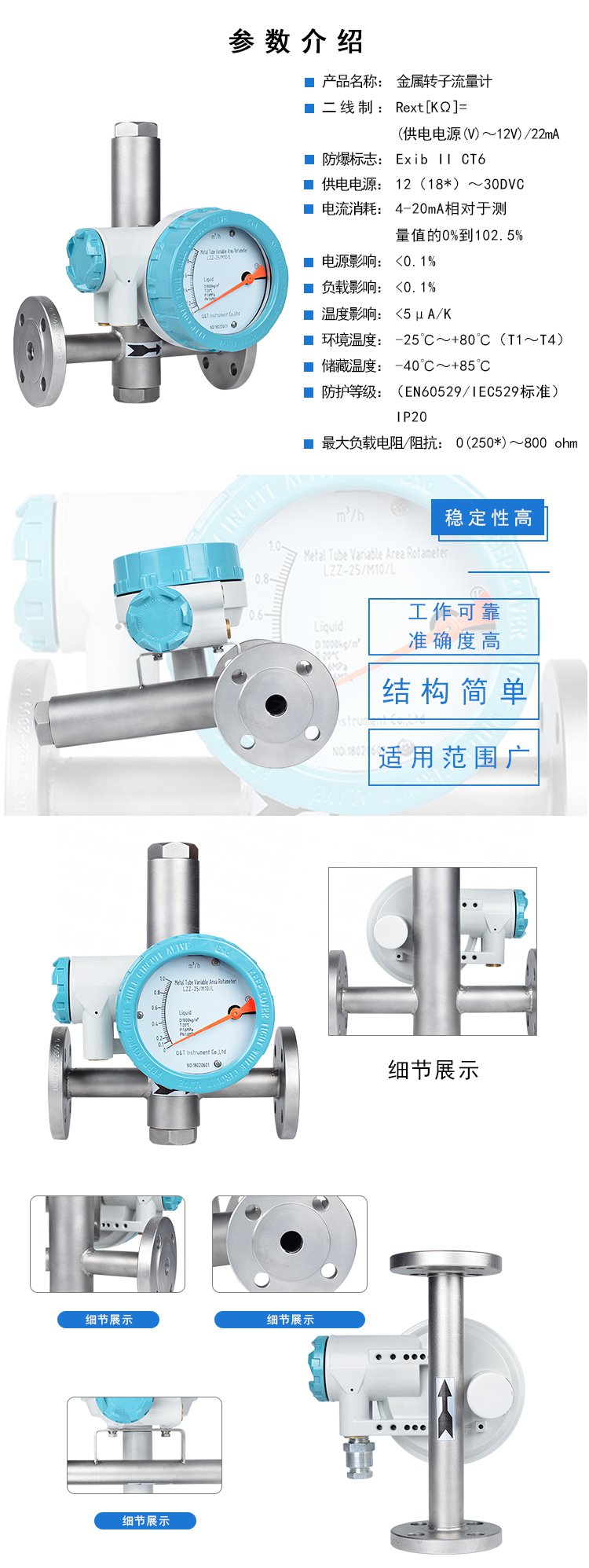 LZZ/D-CQ系列金屬管浮子流量計(jì),采用可變面積式測(cè)量原理,適用于測(cè)量液體、氣體。全金屬結(jié)構(gòu),有指示型、耐腐型、高壓型、夾套型、防爆型。具有0-10mA、4-20mA的標(biāo)準(zhǔn)模擬信號(hào)輸出和現(xiàn)場(chǎng)指示。累積,數(shù)字通訊,現(xiàn)場(chǎng)修改測(cè)量參數(shù),不同的供電方式功能,帶有磁性過濾器和特殊規(guī)格品種。