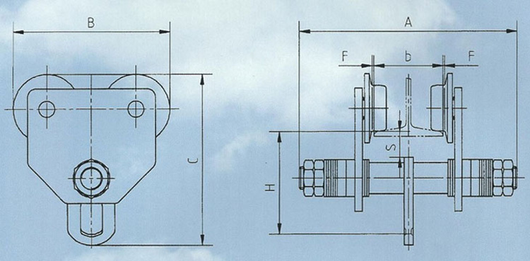 小車安裝在軌道上后,擰緊掛梁上的螺母,掛上輕載荷式運行,待車輪均與軌道接觸后,在擰緊外側的鎖緊螺母,請特別注意掛機梁上內側的螺母與外側的鎖緊螺母必須相互鎖緊。