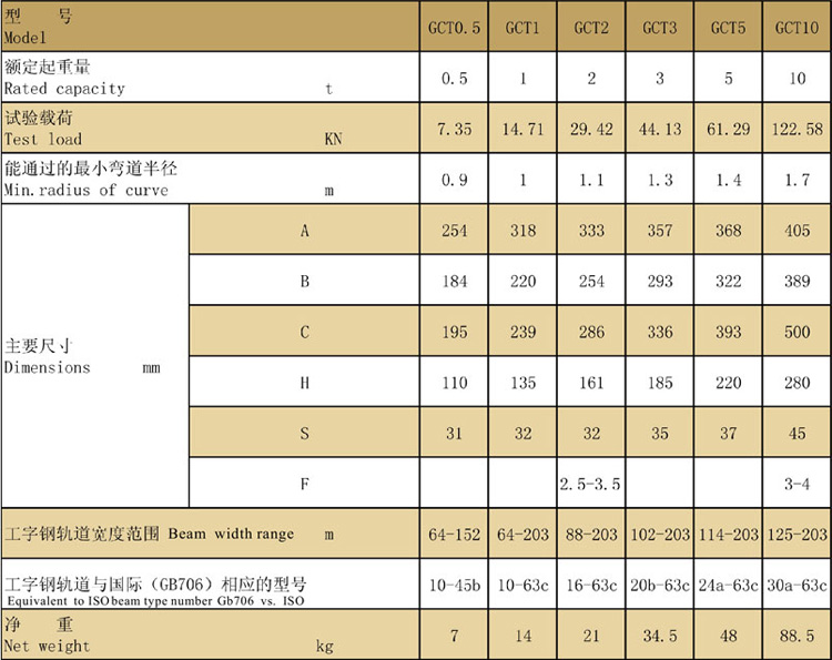GCL型手推單軌小車